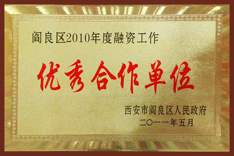 閻良區(qū)2010年度融資工作優(yōu)秀合作單位